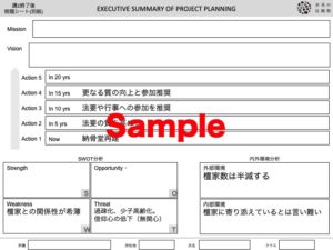 【住職/男性】エグゼクティブサマリーの作成は私にとって大変困難な作業でしたが、自分なりに作ることができ大変良かったです。そして同時に自坊の将来(10年後20年後)を見据えると自坊の特長を生かした取り組みとして何が必要かがわかったことです。