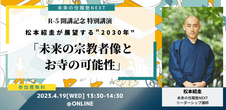 【4/19】未来の住職塾NEXT R-5 開講記念講演開催!松本紹圭が展望する”2030年”「未来の宗教者像とお寺の可能性」